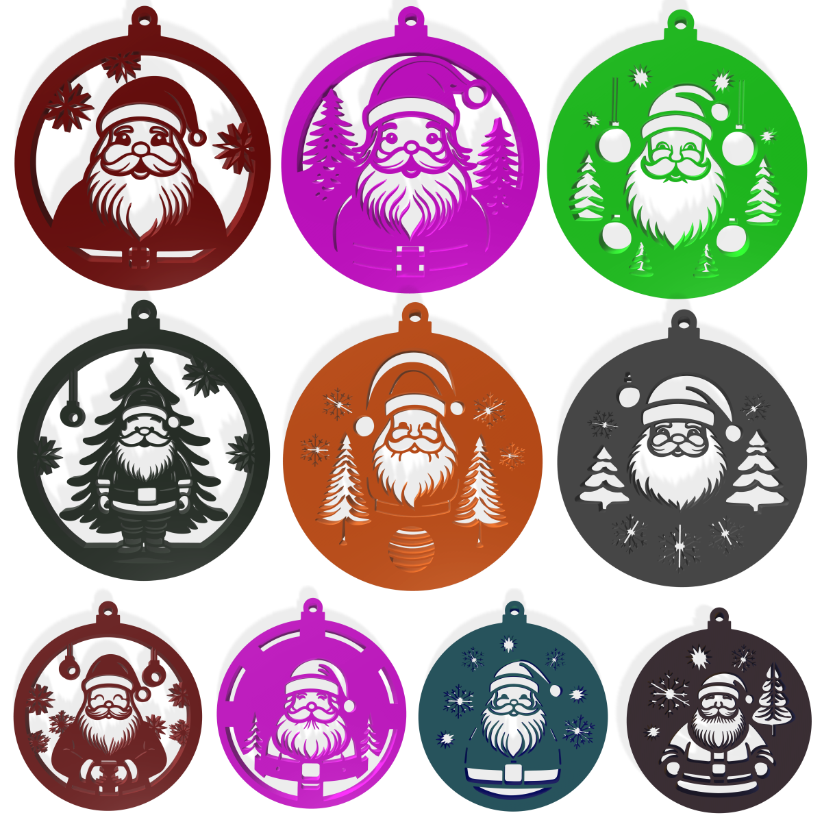 10 Santa Claus Ornaments STL 3D Print Files