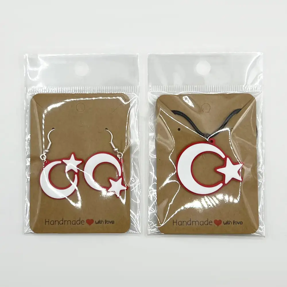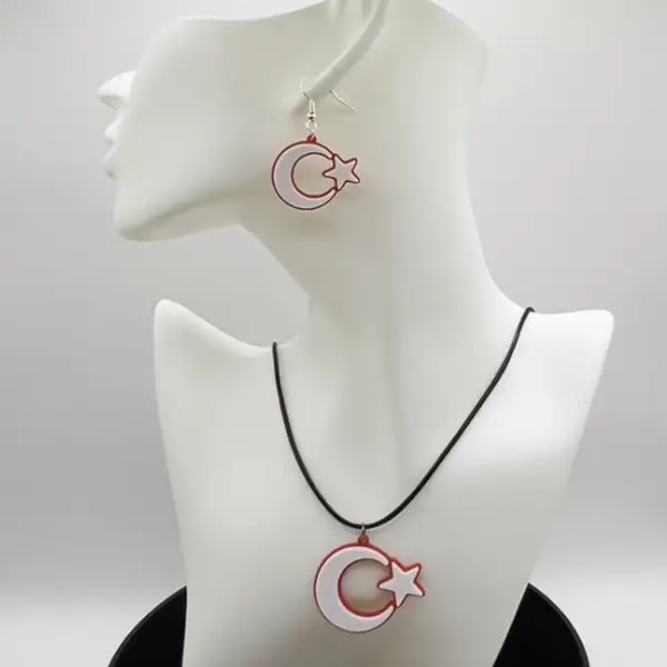 Crescent and Star Earrings and Necklace, Crescent with Star Earrings and Necklace