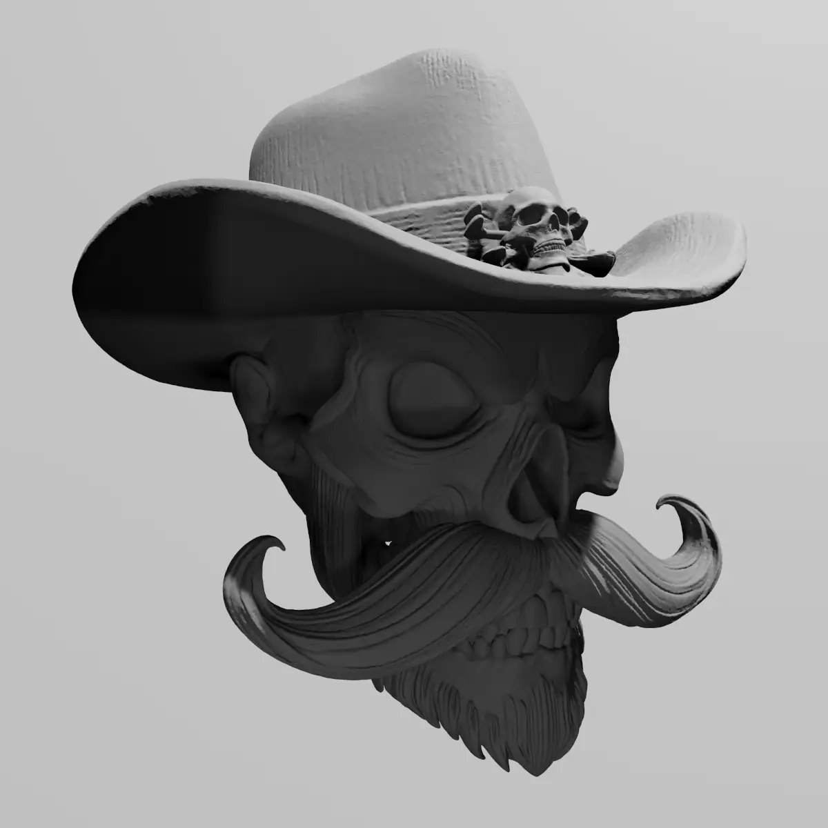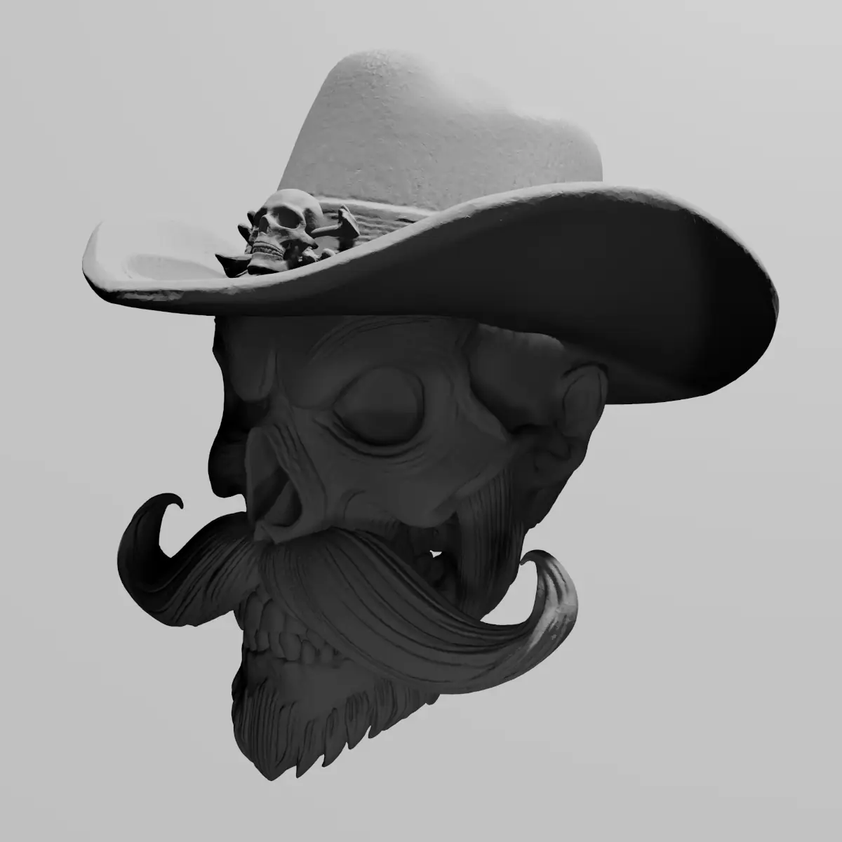 Mustached Cowboy Skull Head Ornament STL 3D Print File - Image 2