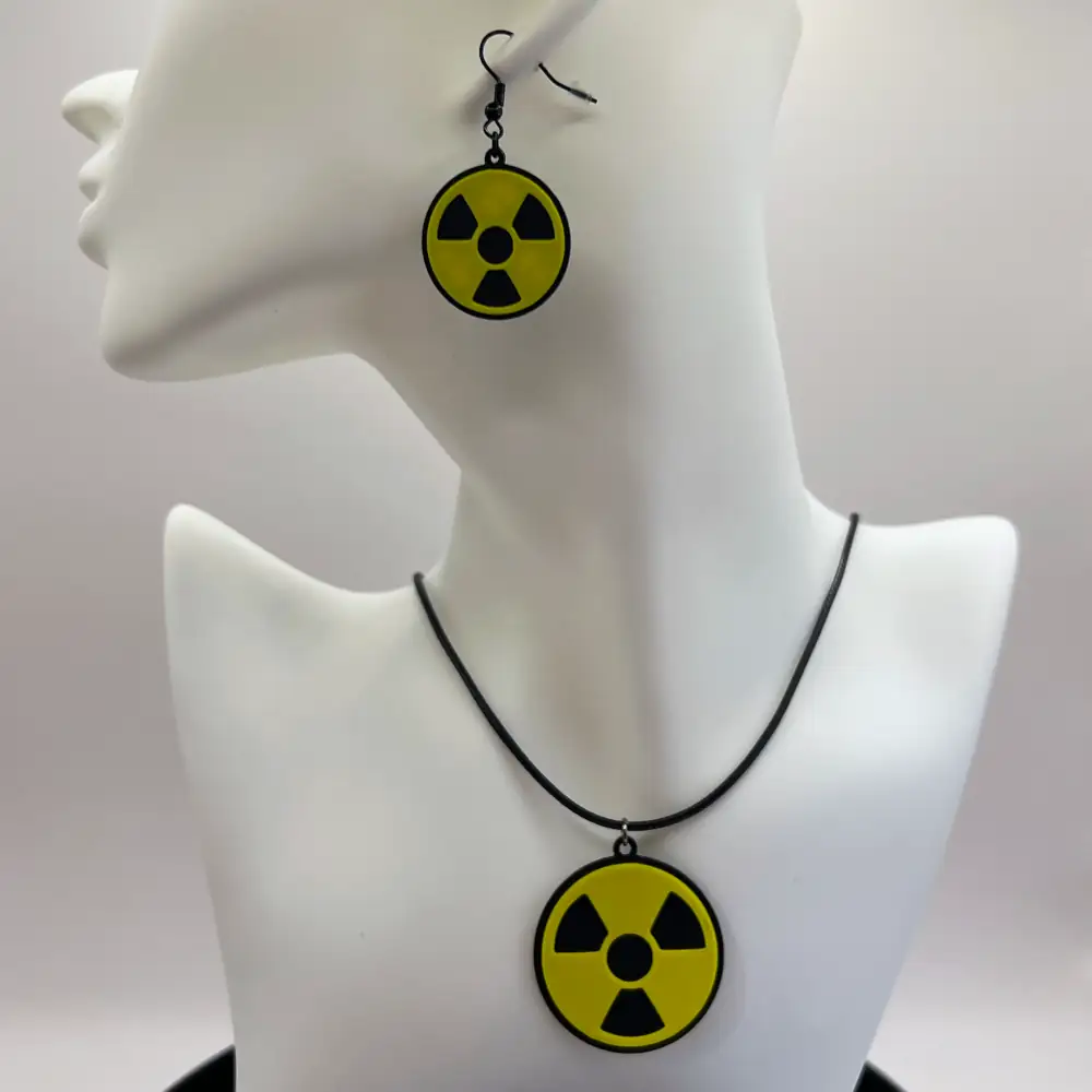 Radiation Symbol Earrings and Necklace, Radioactive Sign Earrings and Necklace