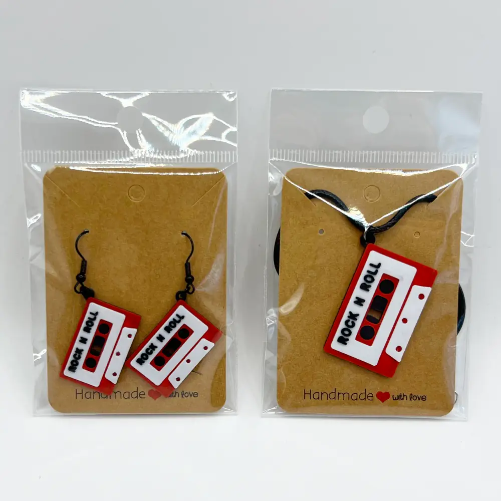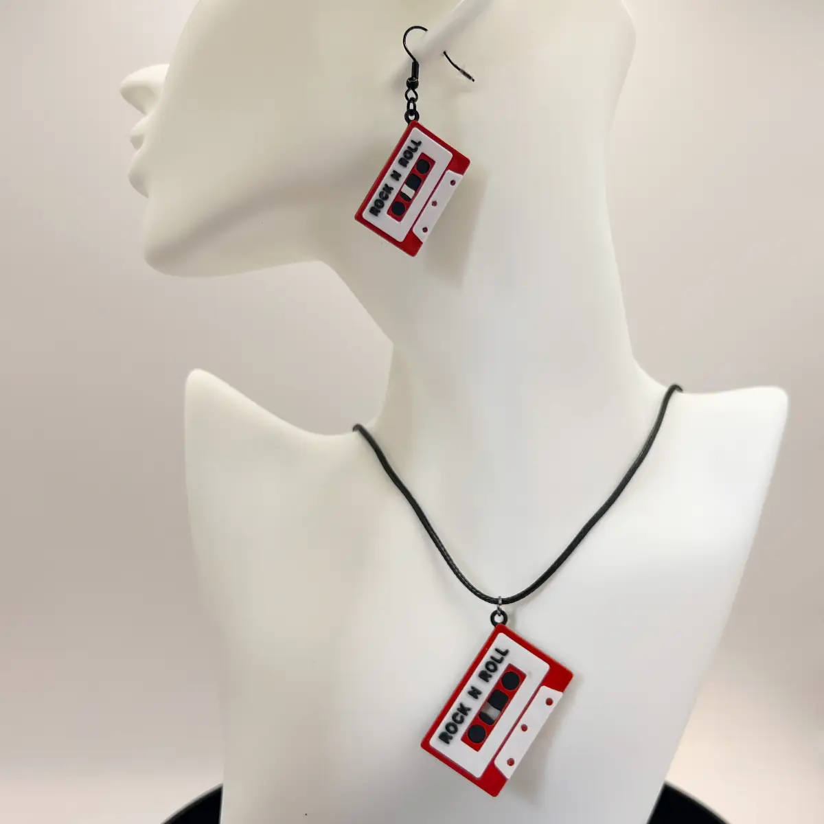 Rock n Roll Casette Earrings and Necklace, Rock Casette Earrings and Necklace